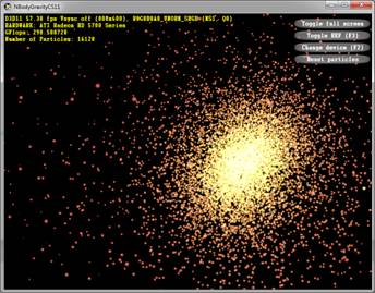 The AMP team has updated the N-Body Simulation code to turn it into a clean port that relates to the Compute Shader original in a comprehensible way. Now it has comparable performance to the original (optimized) version (both versions do >330 gFLOPS at >30 fps for 23,040 particles on my pc).