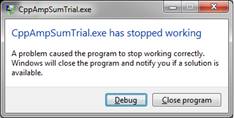 and in the case of the C++ AMP program, it either didn’t compile or produced a runtime error.