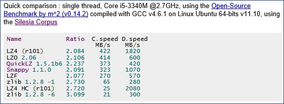 LZ4, an open source compression library. This is a very fast compression library, see image below, from the website: